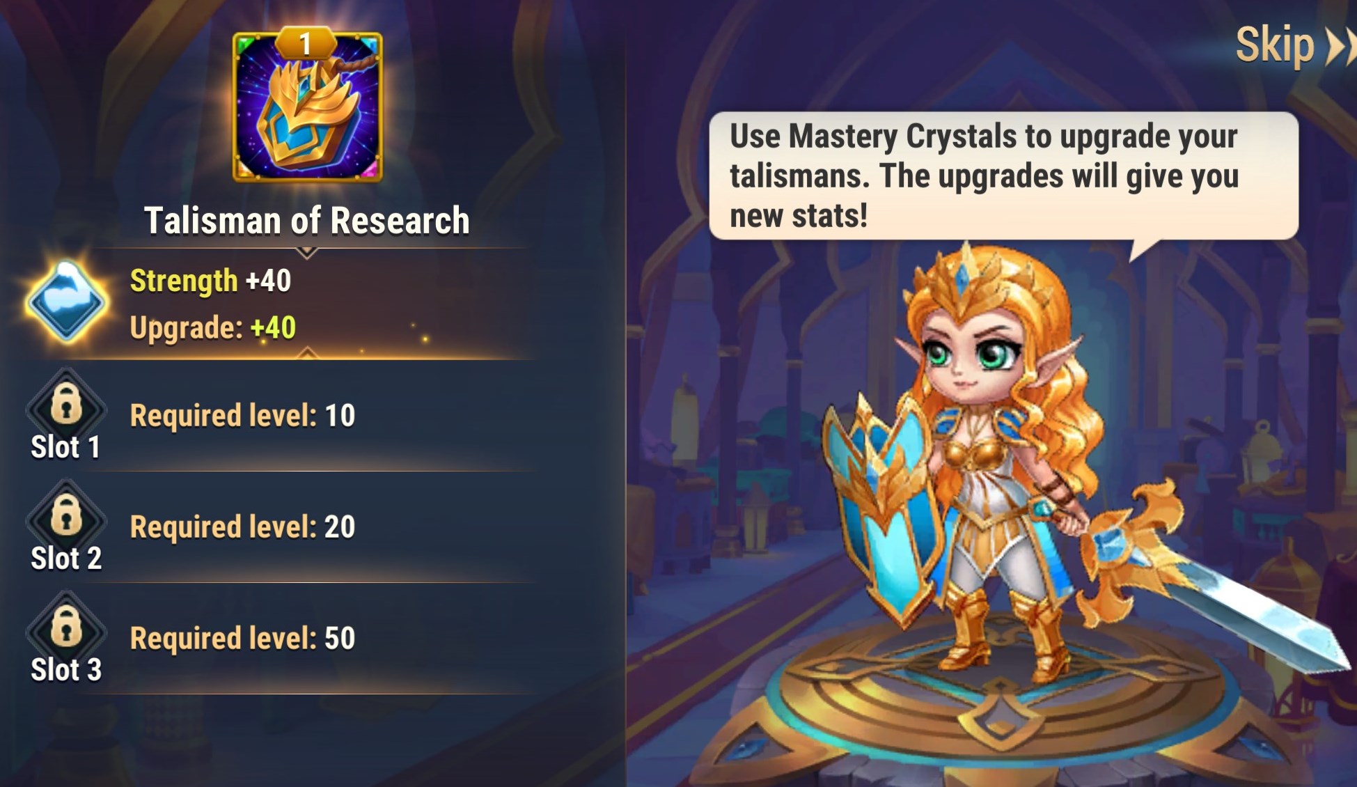 | Mastery Crystal is used to level up Talismans and gradually unlock additional stat slots. You can get Mastery Crystals during Special Events. | |