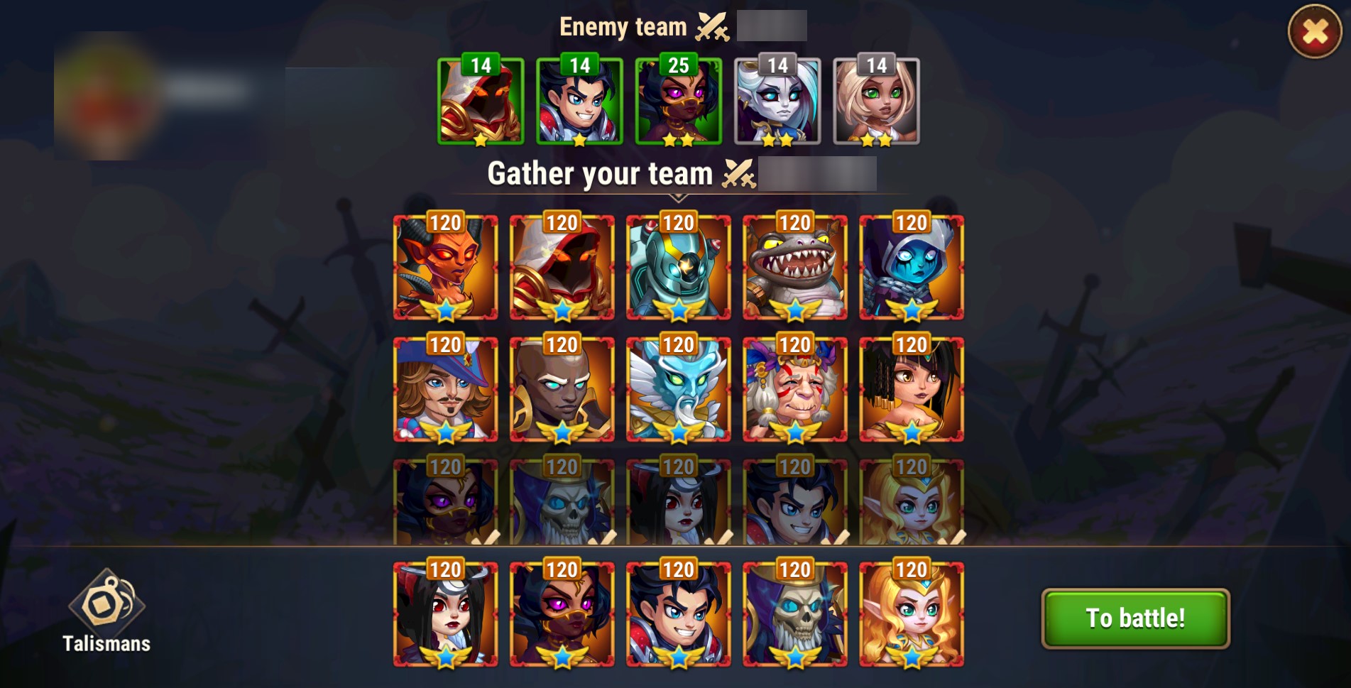 After pressing Attack under the chosen opponent nickname, you can select your attacking team.