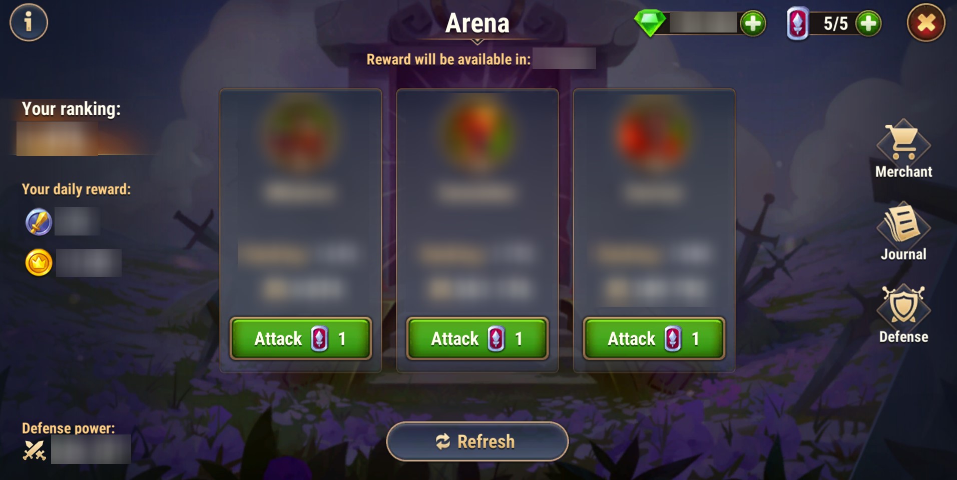 Once the battle ends, you cannot attack again for one minute. However, you can use 50 emeralds to skip the waiting time. Also, if you have spent all five free battle attempts, you can use emeralds to purchase more. Each purchase grants you five additional attempts. The higher your VIP level, the more additional attempts you can buy.