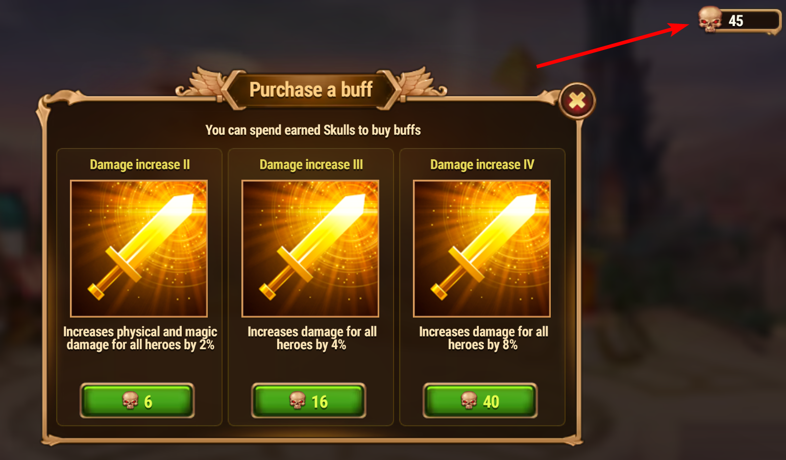 You receive Tower points and skulls for winning battles. You spend skulls on various buffs at Tower altars: