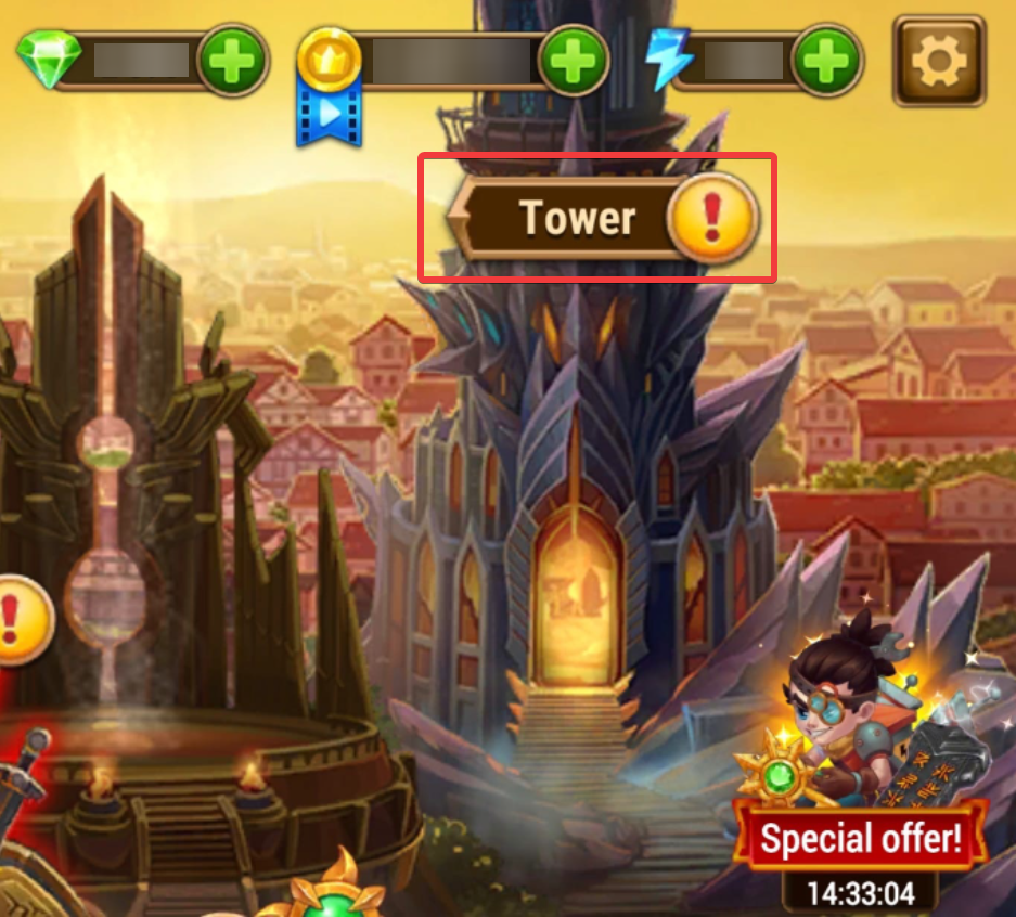 To participate in a battle in Tower, your heroes have to be level 15 or higher.