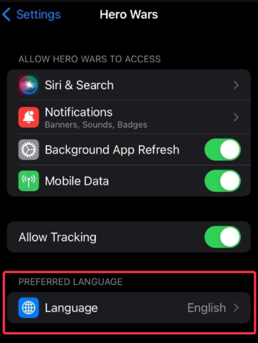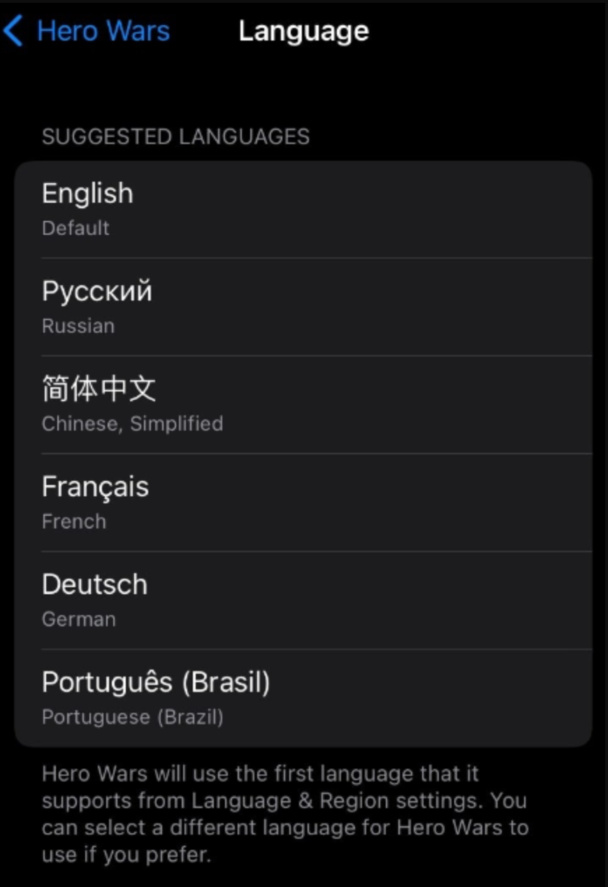 Hero Wars: Alliance automatically updates language settings based on the language of your device.