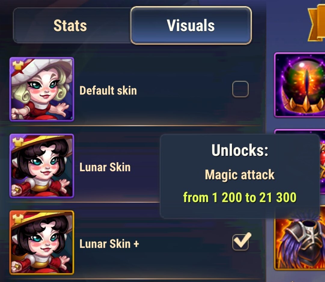 Skins increase hero stats and change their appearance. Each hero has a Default skin that boosts their main characteristic: strength, agility, or intelligence. Additional skins upgrade secondary stats. To level up a skin, you need to use Skin Stones.