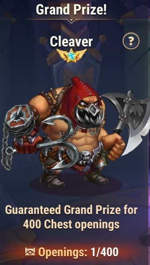 There are several grand prizes in Heroic Chest. The first grand prize is always Cleaver, a legendary six-star hero.