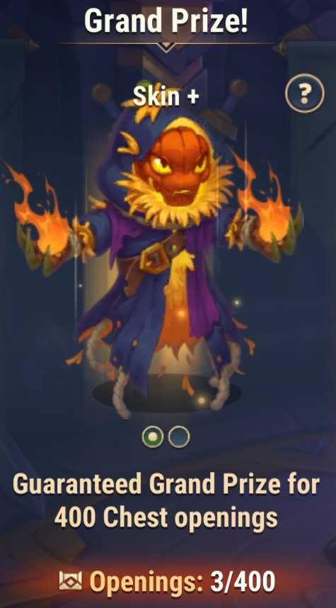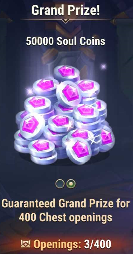 - A guaranteed grand prize drops every 400th Chest opening! However, you can still get the grand prize earlier. The chance depends solely on luck.