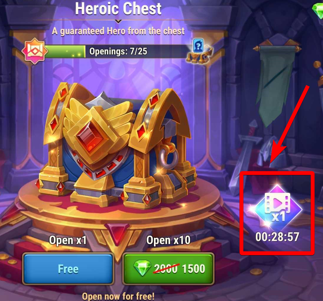 Once a day, you can open the chest by watching a video. When you enter the chest for the first time a day, a 30-minute timer appears. It means that you have 30 minutes to watch the video. If you do not watch it during this time period, the next video will become available only in 24 hours.