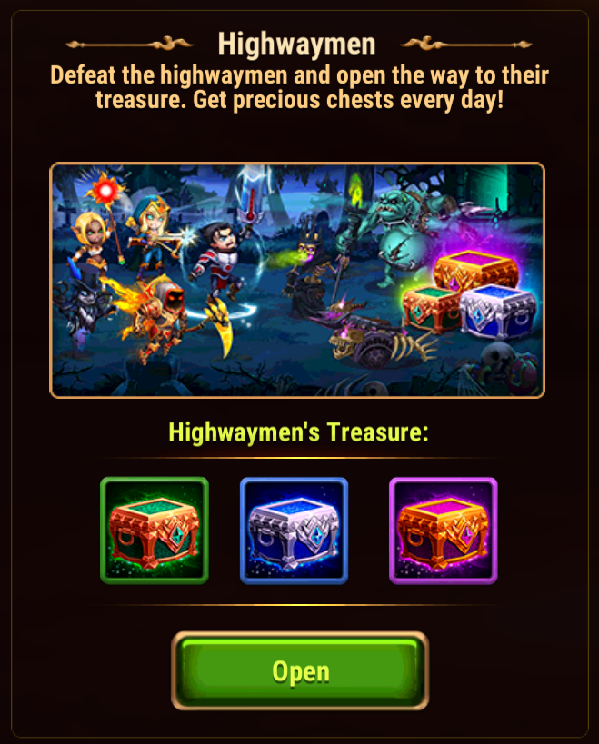 Epic Chest contains 45 Highwaymen Coins and 7,000 gold or a purple item.
