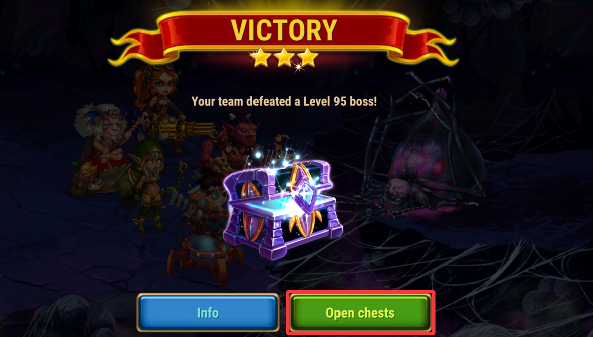 Once you defeat the boss, you receive one free Chest, which you can open on the boss' screen or by tapping the Open chests button right after the battle: