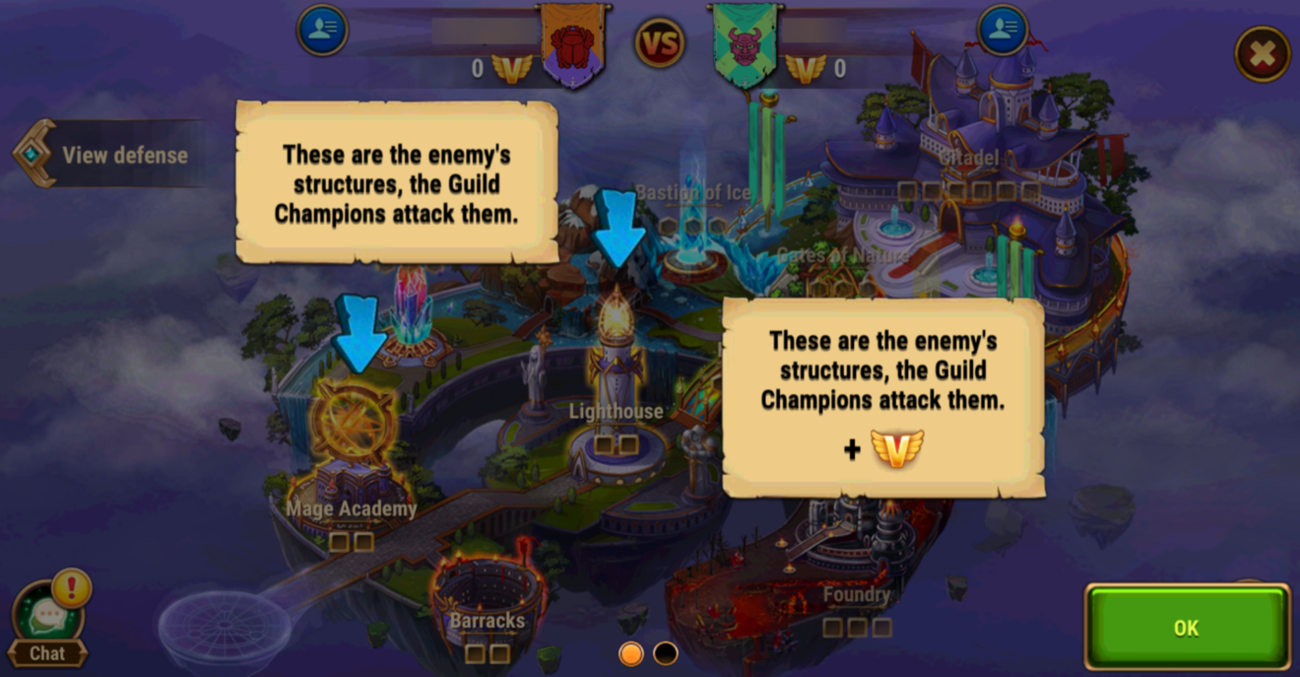 To learn more about the upcoming Guild War, tap the Visit/Attack button.