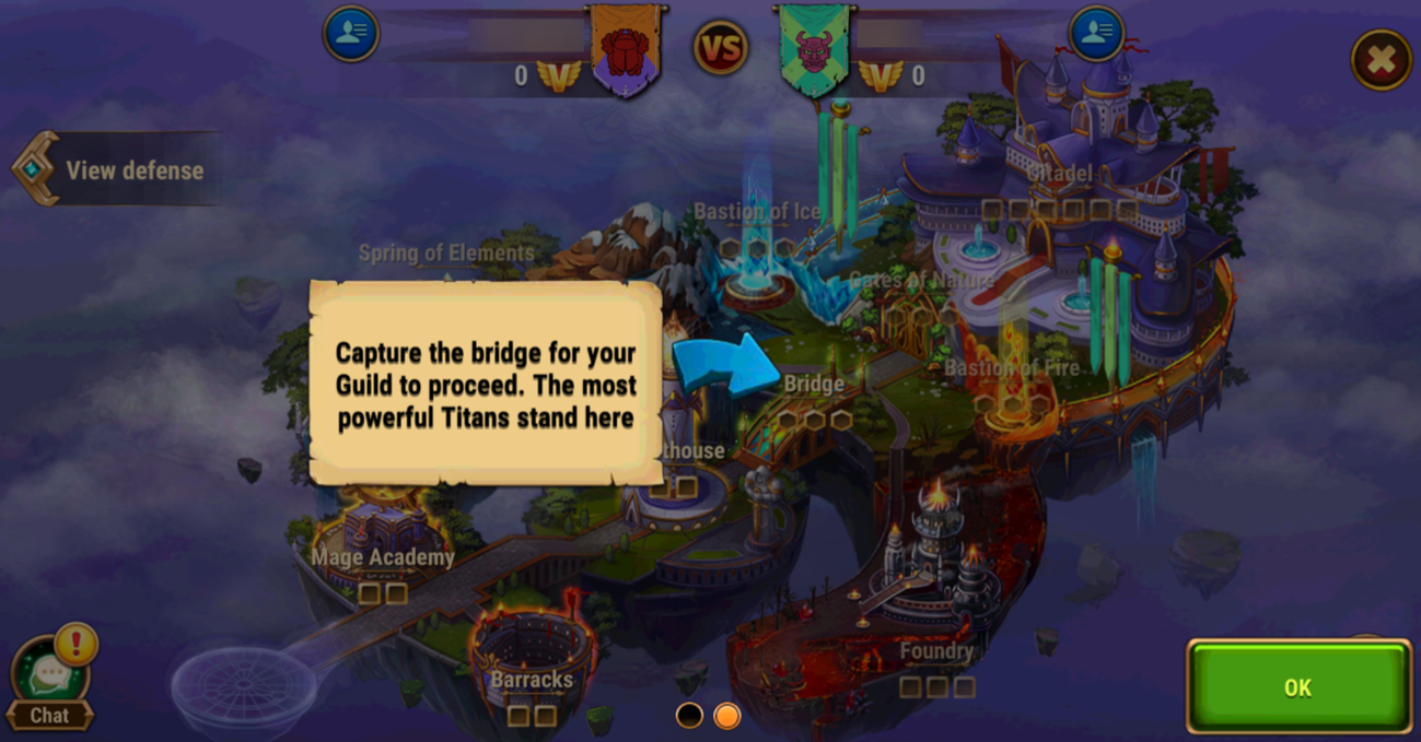 The Ghost Bridge is an additional bridge that becomes available if a Guild breaks through any three other fortifications. Heroes or titans cannot be placed on it. Ghost Bridge cannot be attacked. It grants the opportunity to bypass the central bridge.